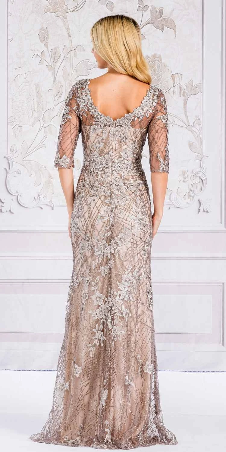 The Amelia Couture 7045 is a timeless, floor-length sheath gown. It boasts a fitted silhouette, scoop neckline, and mid-sleeved arms. A floral embroidered applique and delicate sequin and glitter embellishments adorn the dress for a classic and sophisticated look. Sweep train adds a touch of drama and grace. An ideal full-length dress for red carpet events, pageant, prom or in any other formal occasions!