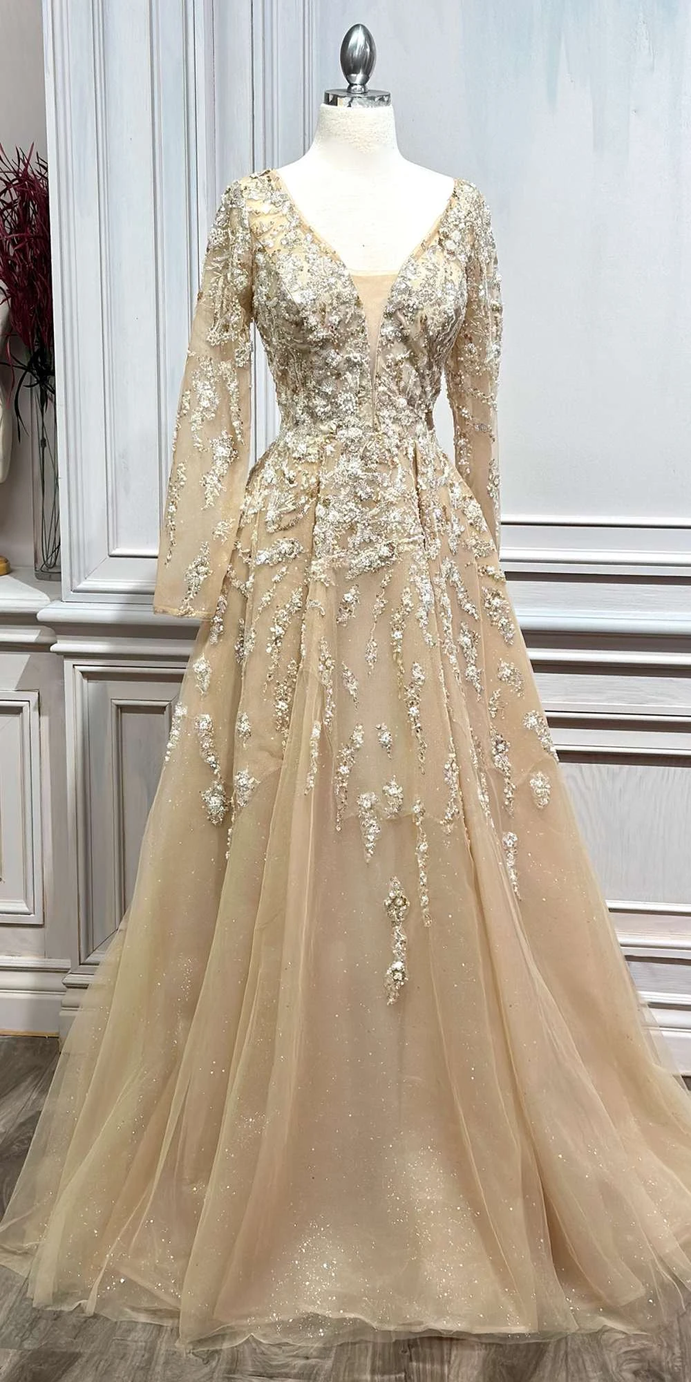 Imagine yourself wearing this fabulous floor length A-line dress by Andrea & Leo A1215. Enter a world of romance with this stunning long sleeve A-line dress. Inspired by luxury and charm, its sheer embellished long sleeves and beaded v-neckline bodice will have you feeling like a queen. It is sure to bring out your poetic side with its layered tulle skirt and floral beading that trickles down the skirt. This dreamy style with the mid open V back has a zipper closure for modesty and comfort where it counts! This formal dress speaks glamour for red carpet events, pageant, prom or in any other formal occasions!