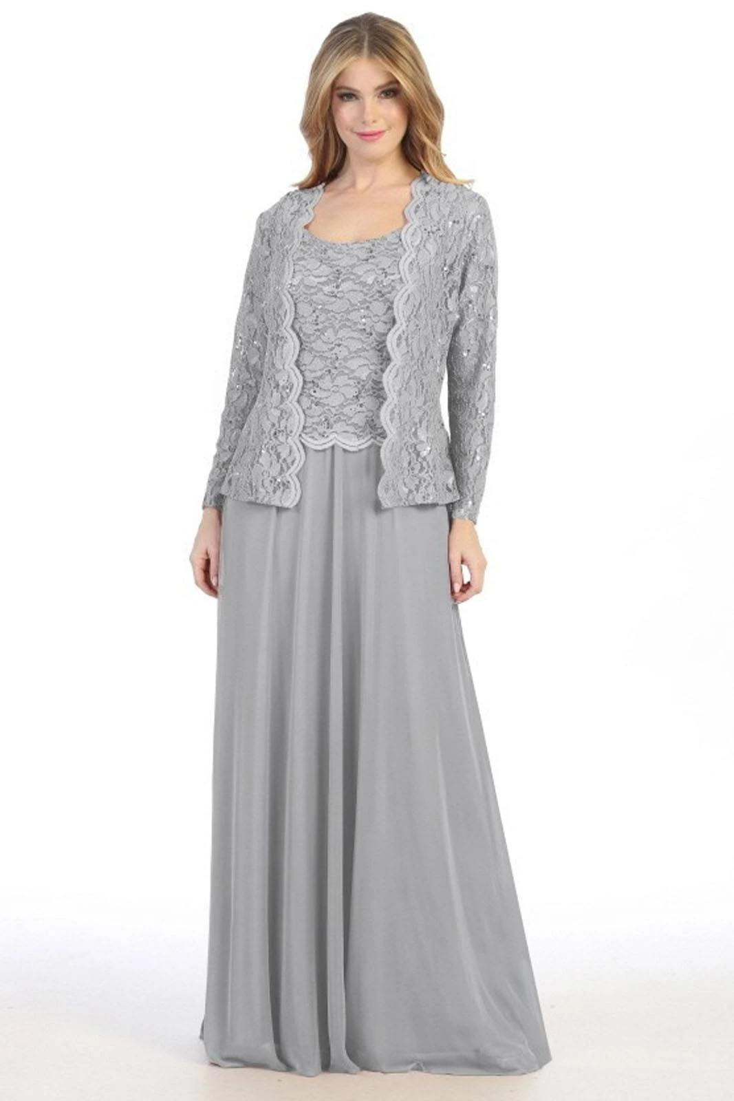 Introducing the Celavie 6430-L, a stunning and elegant A-line dress perfect for any formal occasion. This sleeveless design features a scoop neckline and a flowy chiffon skirt, making it both stylish and comfortable. The lace top is adorned with beautiful sequin embellishments, adding a touch of glamour. Complete with a back zipper and a floor-length finish, this dress is versatile and great for the mother of the bride. Made in the USA, it also comes with a matching long sleeve lace bolero jacket for added coverage.