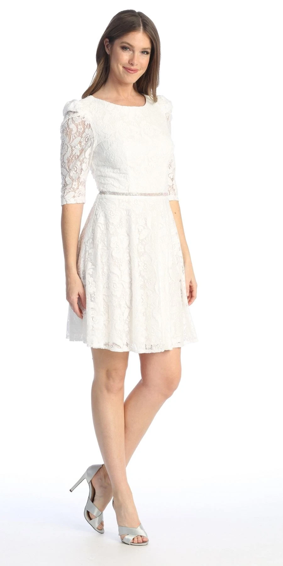 Imagine yourself wearing this short gown for your next special event by Celavie 6530-S. This short, A-line lace dress features mid-length sleeves, round neckline and rhinestones embellishing the waist. An ideal dress for dinner party, semi-formal, wedding guest or in any other formal occasions!