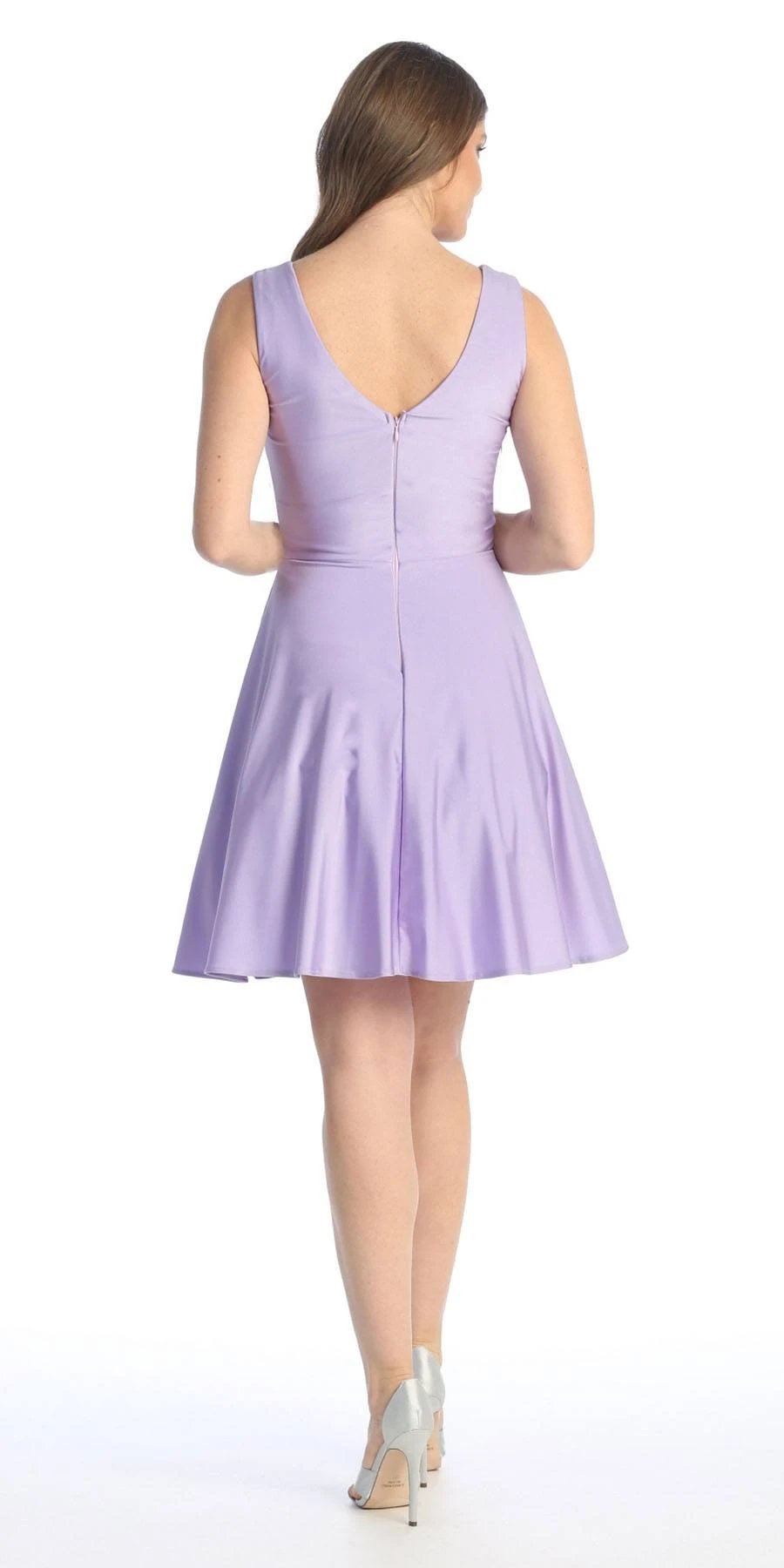 Be confidently beautiful with this flattering short dress by Celavie 6547-S. An A-line silhouette short dress made of satin, featuring a V-shape neckline and V-back with zipper. The natural waist is adorned with a rhinestone belt. This short dress is lined with comfy fabric, an ideal outfit for homecoming, sweet-sixteen and graduation parties, wedding-guest or in any other special celebrations!