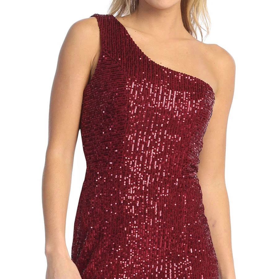 Make a statement with this Celavie 6582-S short, above knee length cocktail dress made in the USA. Features include sequins, a fitted silhouette, and a side leg slit for a modern, chic look. Perfect for formal occasions and a sophisticated evening. An ideal dress for dinner party, semi-formal, wedding guest or in any other formal occasions!