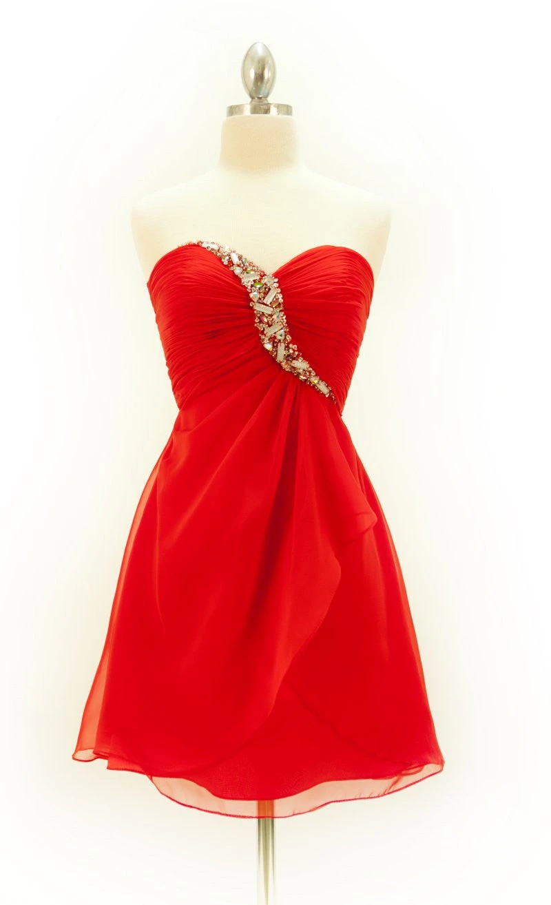 CLEARANCE ITEM – Expertly crafted by Cinderella Divine HK5744, this Short Red Chiffon Dress (Size 4) is perfect for a night on the town. The A-line design and empire waist flatters any figure, while the embellished bodice and chiffon overlay add a touch of elegance. With a strapless, sleeveless sweetheart neckline, this dress is sure to turn heads. Get yours now during our clearance sale! An ideal short dress for red carpet events, pageant, prom or in any other formal occasions!