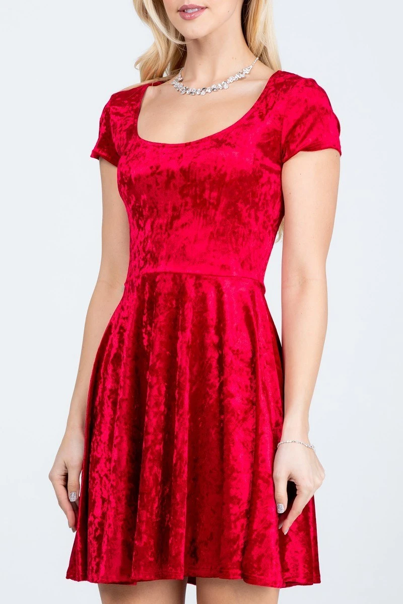 CLEARANCE ITEM – Imagine yourself in this short cap sleeve dress made of velvet by La Scala 25821 in red, XL. This cute short dress features a skater design. This A-line gown is a perfect outfit for cocktail, show choir, dinner party or any other special event.