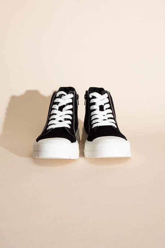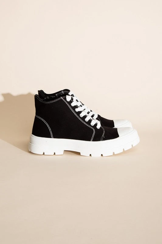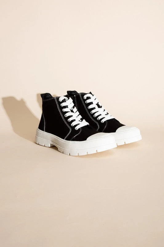 Step into urban style with our Lace Up Canvas High Top Sneakers, a perfect blend of comfort and trendiness. These sneakers feature a classic lace-up design that provides a snug fit and timeless appeal. With their high-top silhouette and durable canvas construction, these sneakers are a versatile choice for adding a touch of streetwear flair to your casual outfits.