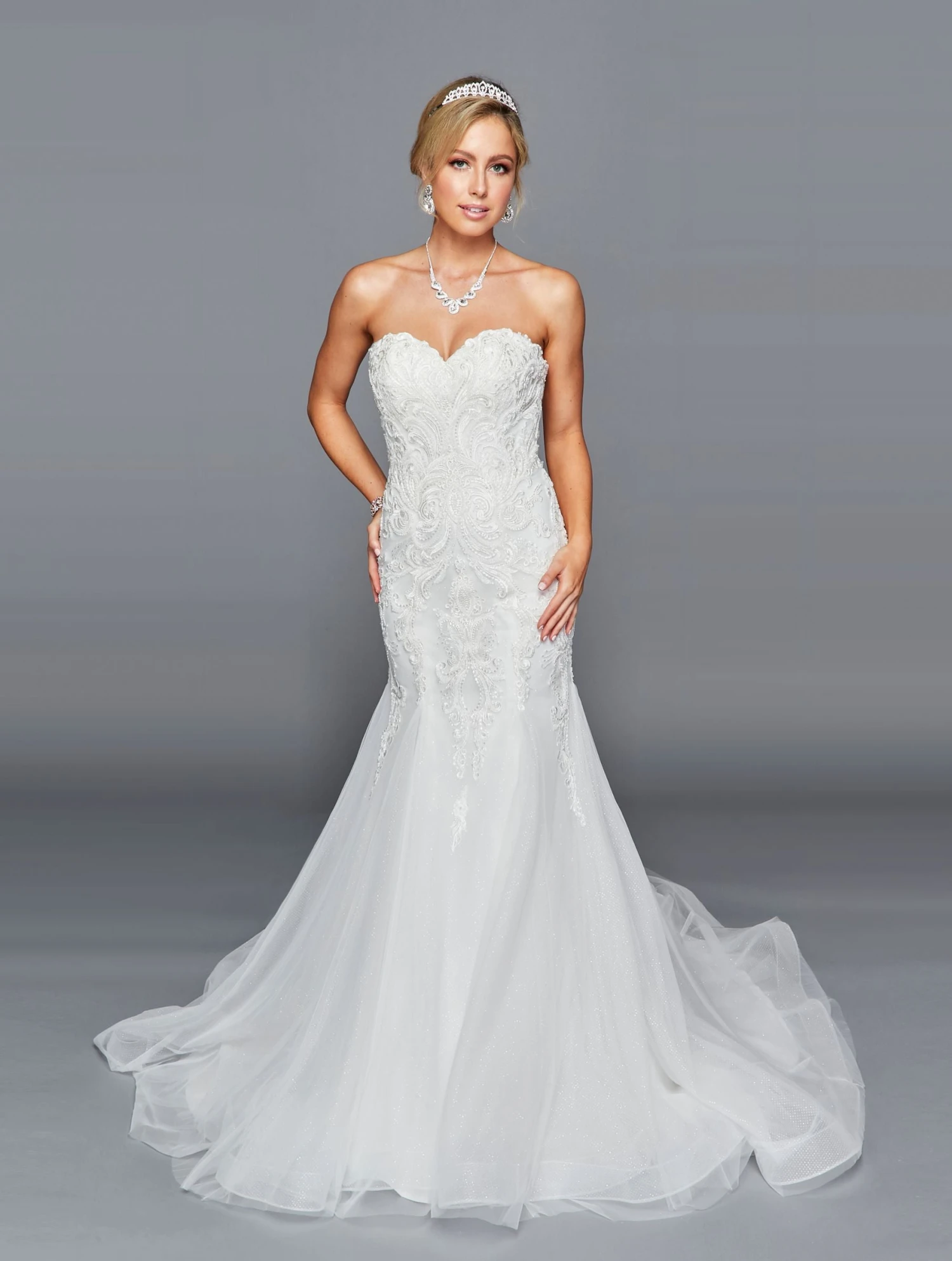 Imagine yourself wearing this beautiful floor length trumpet/mermaid wedding gown for your upcoming wedding or debutante by DeKlaire Bridal 440. Strapless sweetheart neckline sparkle glitter lining mermaid court train wedding dress with beaded tulle clear sequins applique. A beautiful wedding dress to make your day feel extra special!