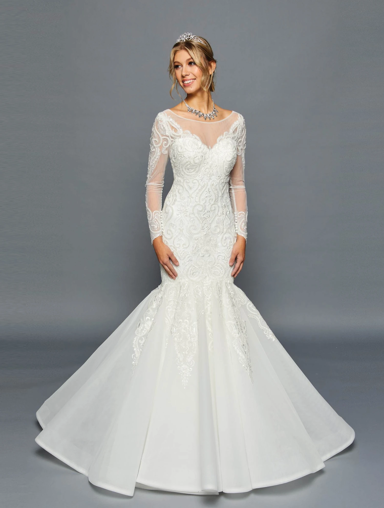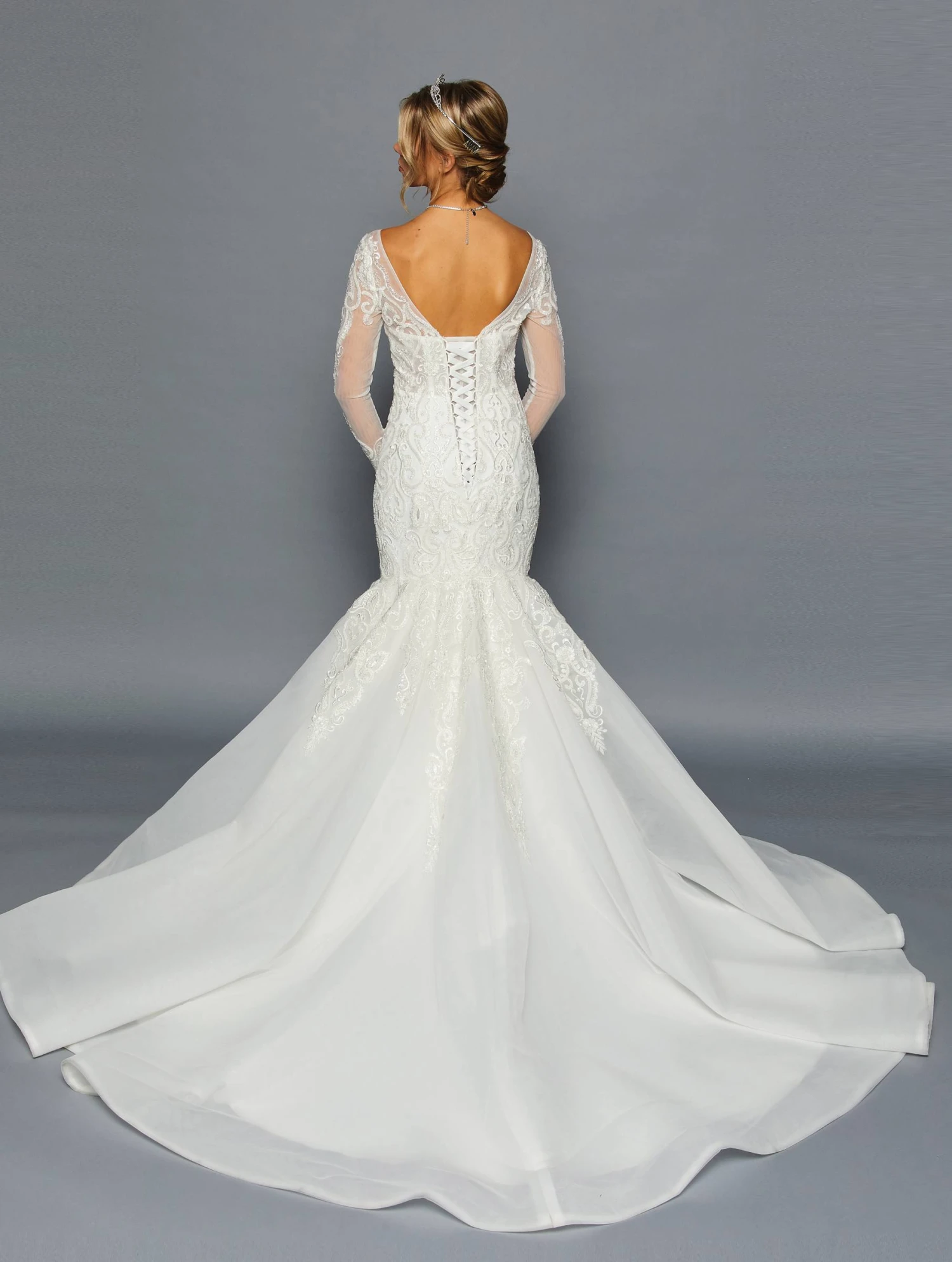 Imagine yourself wearing this beautiful floor length trumpet/mermaid wedding gown for your upcoming wedding or debutante by DeKlaire Bridal 459. Illusion boat neckline long sleeve classic mermaid court train wedding dress with beaded lace applique. A beautiful wedding dress to make your day feel extra special!