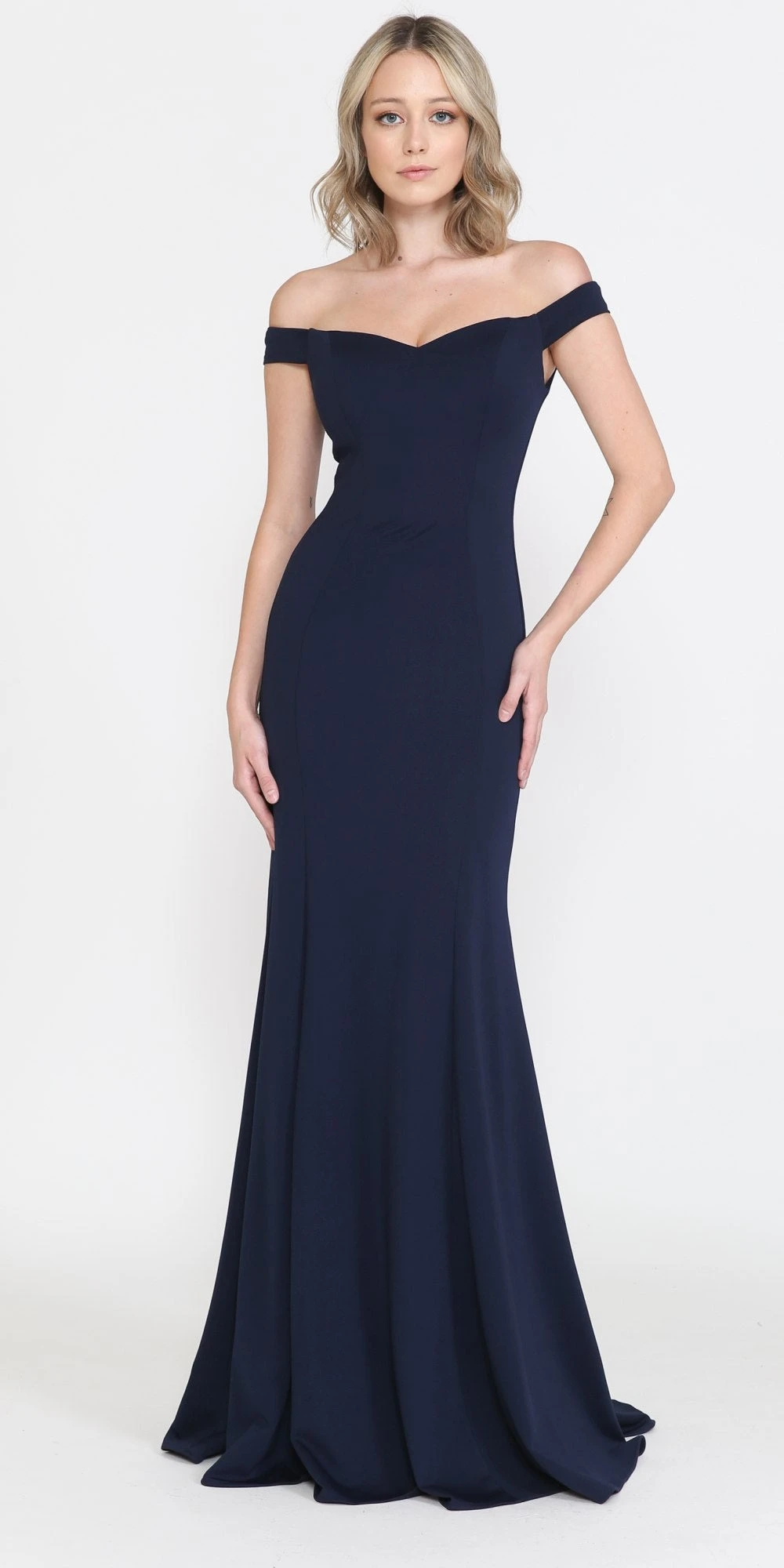 Stand out and shine wearing this mermaid silhouette long formal dress by Edward Young 8160. A fabulous and trendy off-the-shoulder style evening gown perfect for prom, red carpet events or any other formal events.