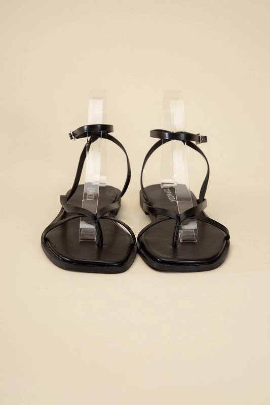 A stylish and comfortable pair of strappy sandals that effortlessly combine fashion and functionality. These sandals feature an open toe with a square shape and a flat heel, making them a versatile and practical choice for your warm-weather wardrobe.