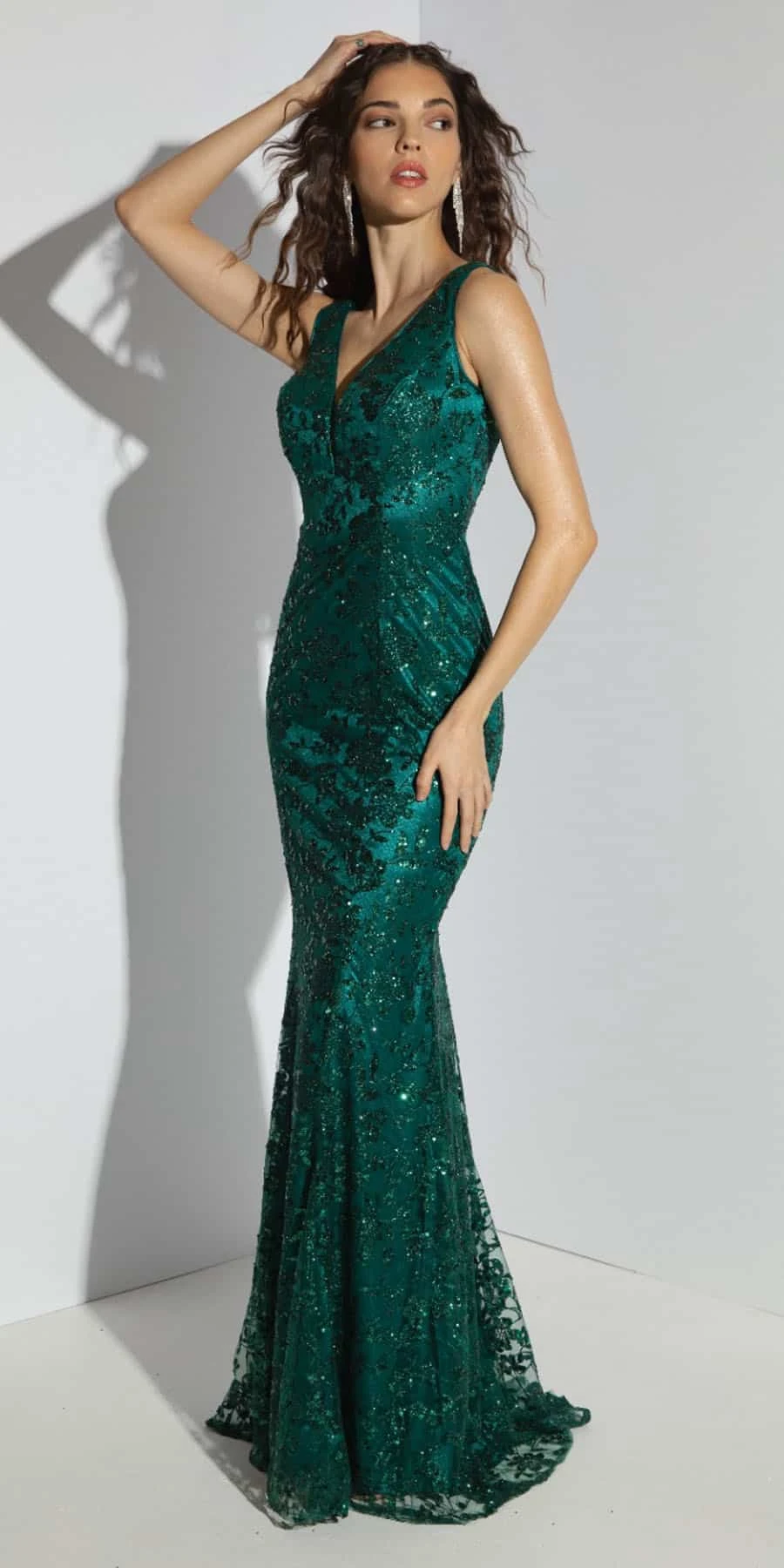 Imagine yourself wearing this long formal evening gown for your next special event by Eureka Fashion 9706. Sequin embellishment, sleeveless fitted V-neck body con evening gown. An ideal full-length dress for red carpet events, pageant, prom or in any other formal occasions!