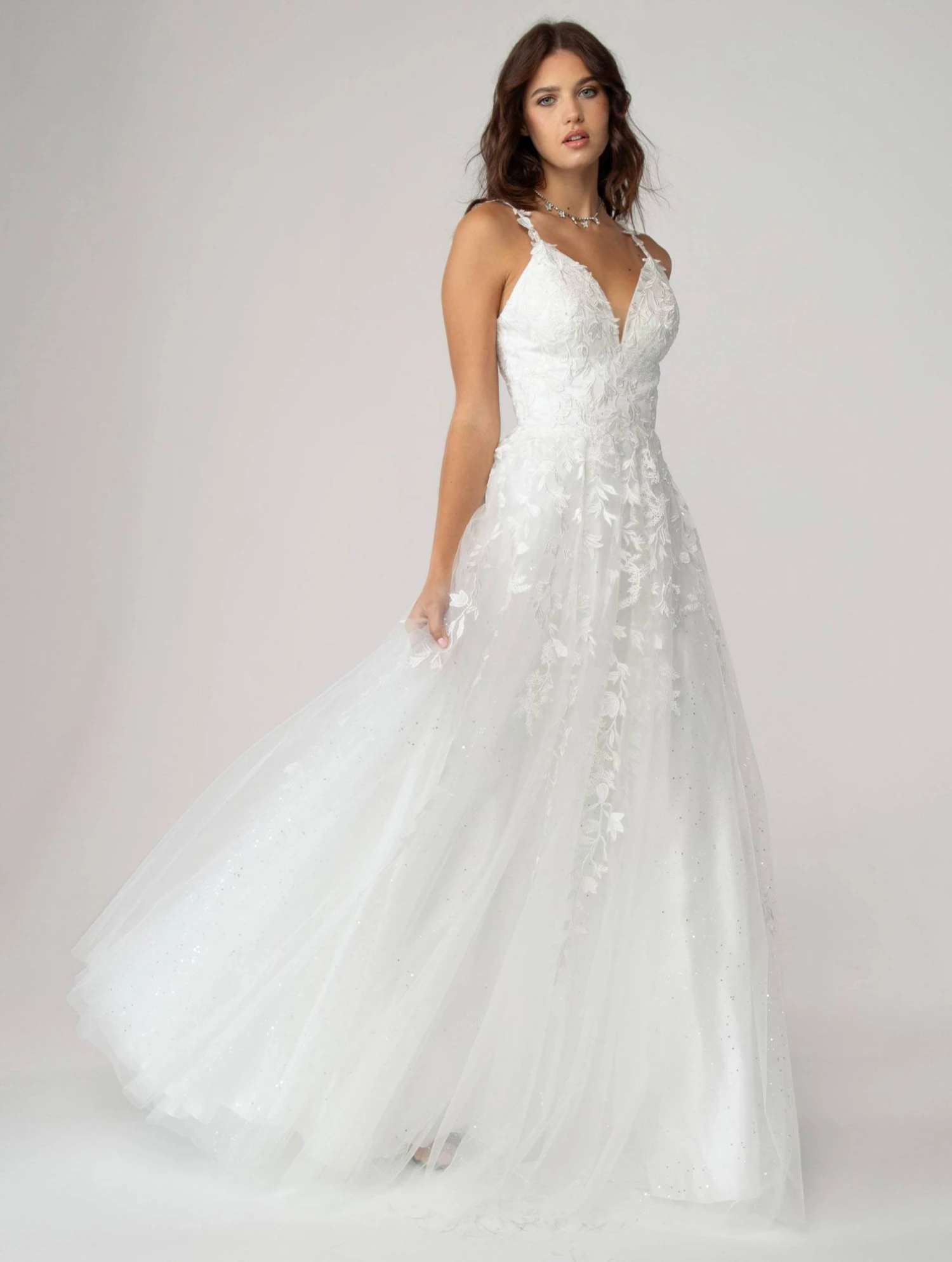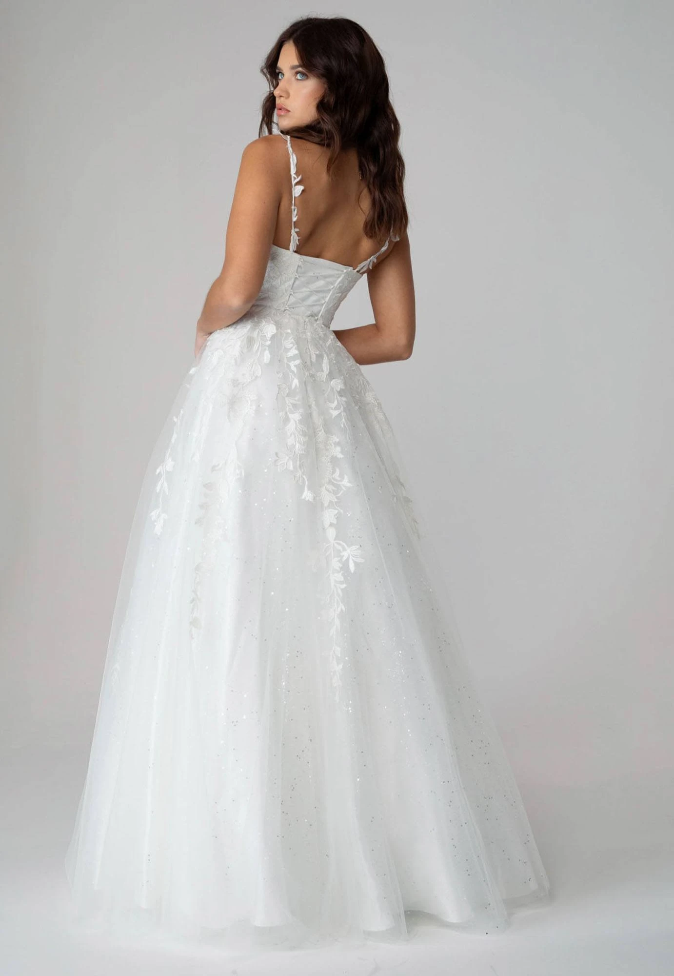 Imagine yourself wearing this long formal evening gown for your next special event by Eureka Fashion 9858. Floor length, A-line silhouette with 3D lace embroidery on the bodice and straps, and mesh with glitter shimmer underlay. Corset back. An ideal full-length dress for red carpet events, pageant, prom or in any other formal occasions!