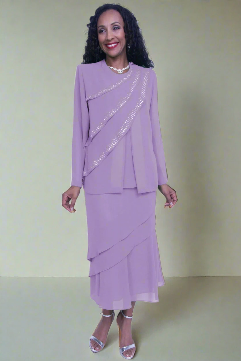 Stay modesty and classy in this plus size ankle length semi formal dress by Hosanna Design 5573 for your next special occasion! Made in chiffon, this 3-piece set features a sleeveless wide strap top, tea length skirt and a long sleeve jacket with small stones ascending across the bodice.