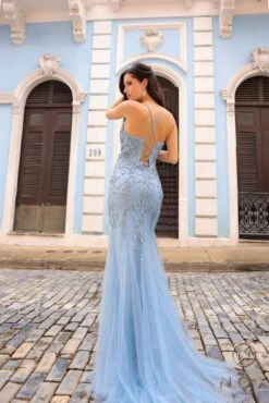 Stand out and shine with this a-line silhouette long formal dress by J&J Fashion USA in mauve. Comfortably lined with satin, this evening gown features an illusion bodice decorated with appliques which romantically cascades down to the skirt and accented with satin band wraps around the natural waist. An excellent outfit for prom, gala dinner party, red carpet events or in any other formal occasions.