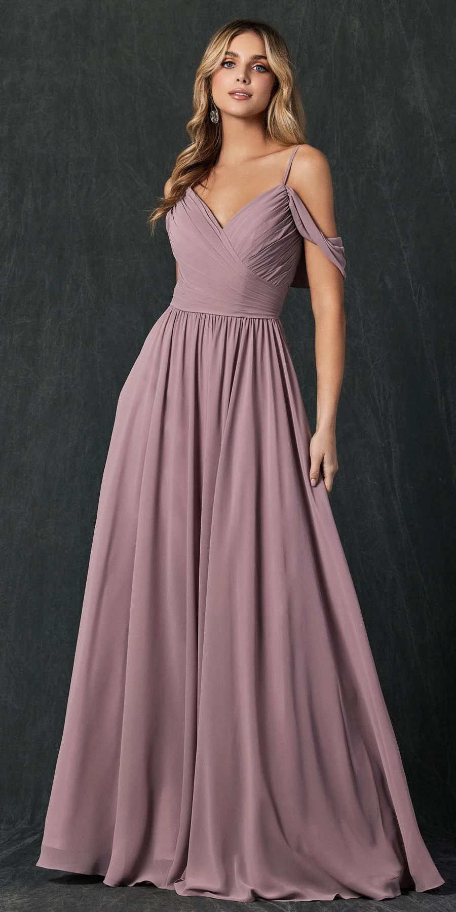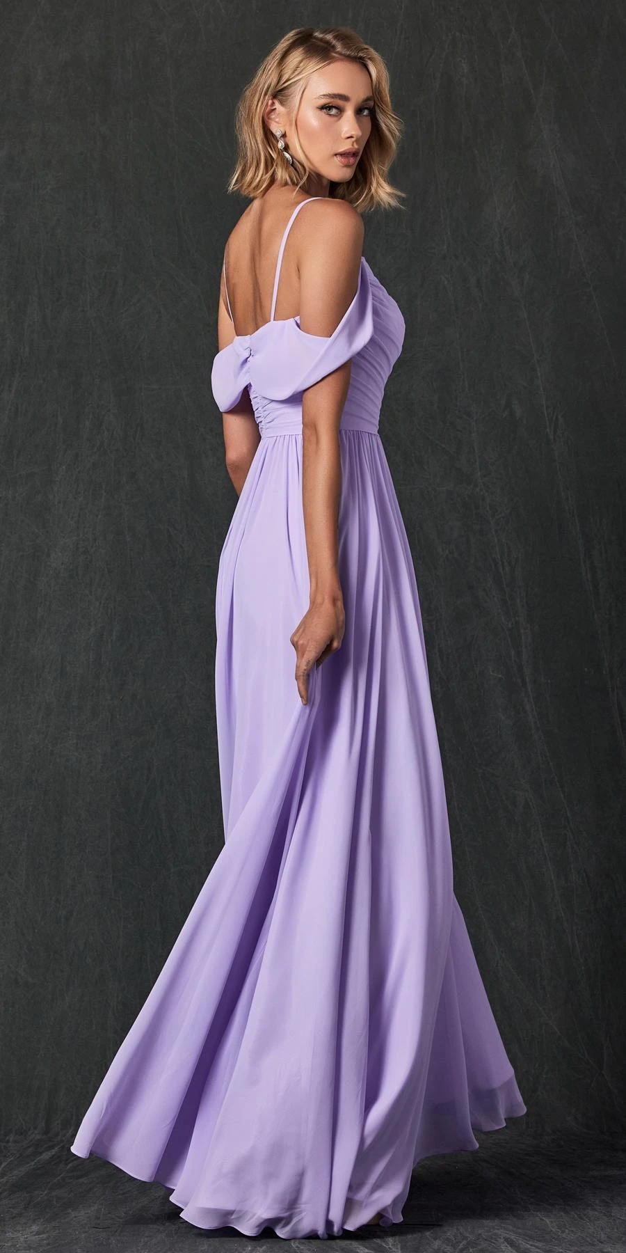 Imagine yourself wearing this stunning formal gown by Juliet 262. This long chiffon A-line dress features cold shoulder straps, sweetheart neckline, pleated bodice and open V-back with tie string. An ideal full-length dress for red carpet events, pageant, prom or in any other formal occasions!