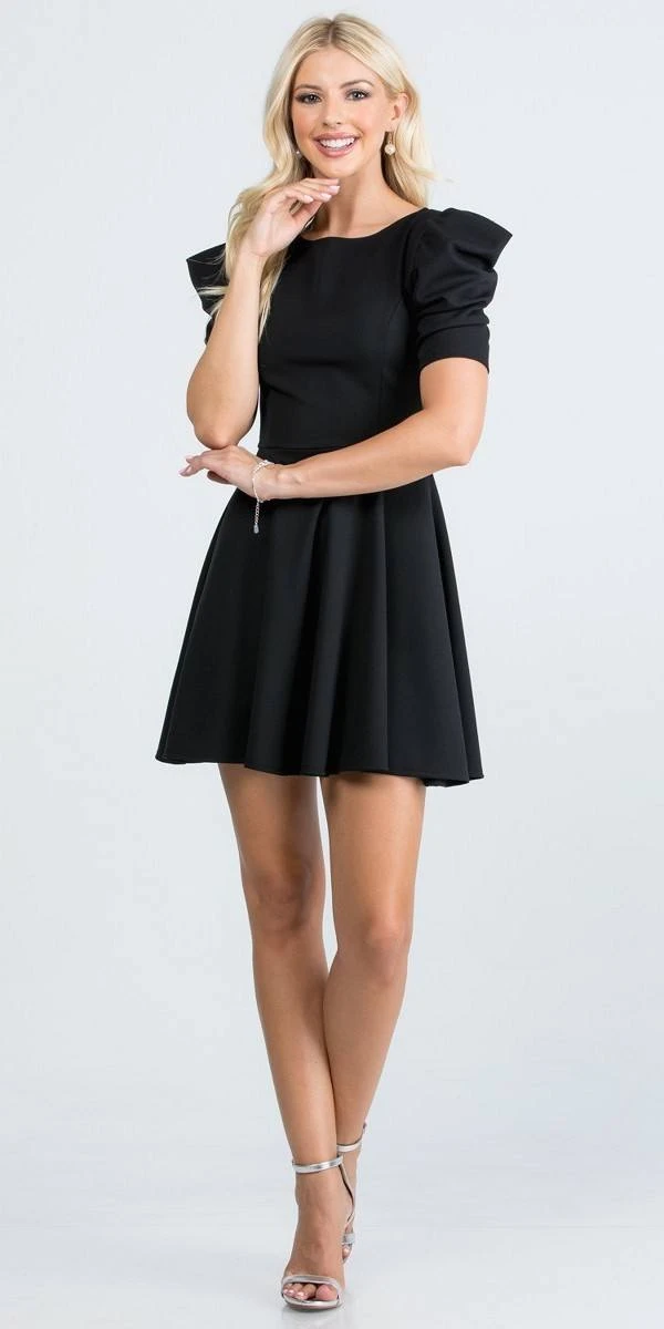 Imagine yourself in this beautiful short casual A-line dress by La Scala 25910, which features an a short puff sleeve design and empire waist. An ideal skater dress for parties, damas or cocktail events.