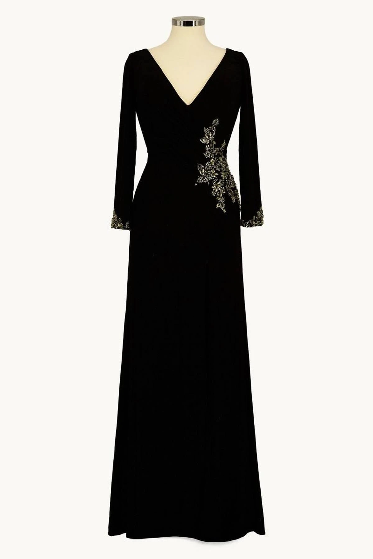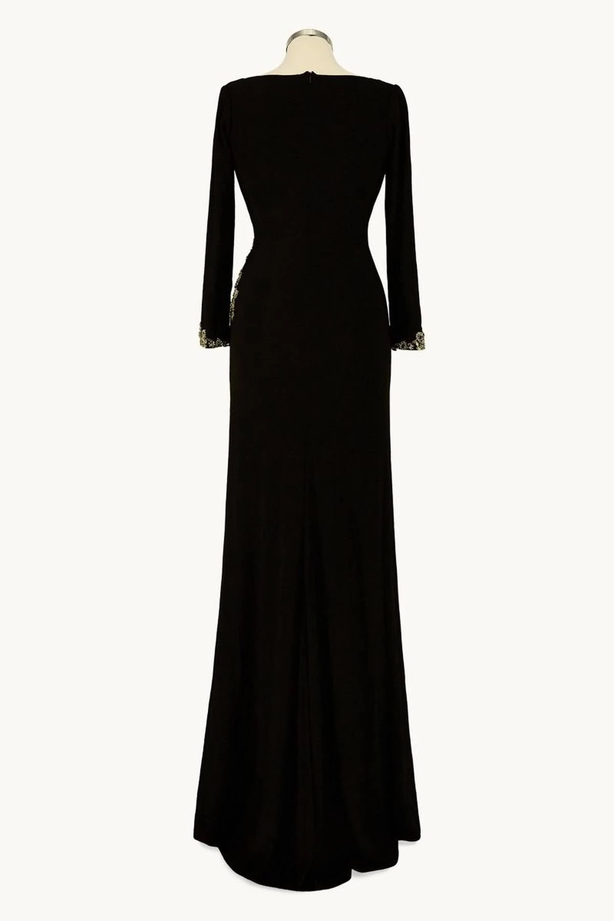 - Features: leg slit, long sleeve, beaded embellished cuffs