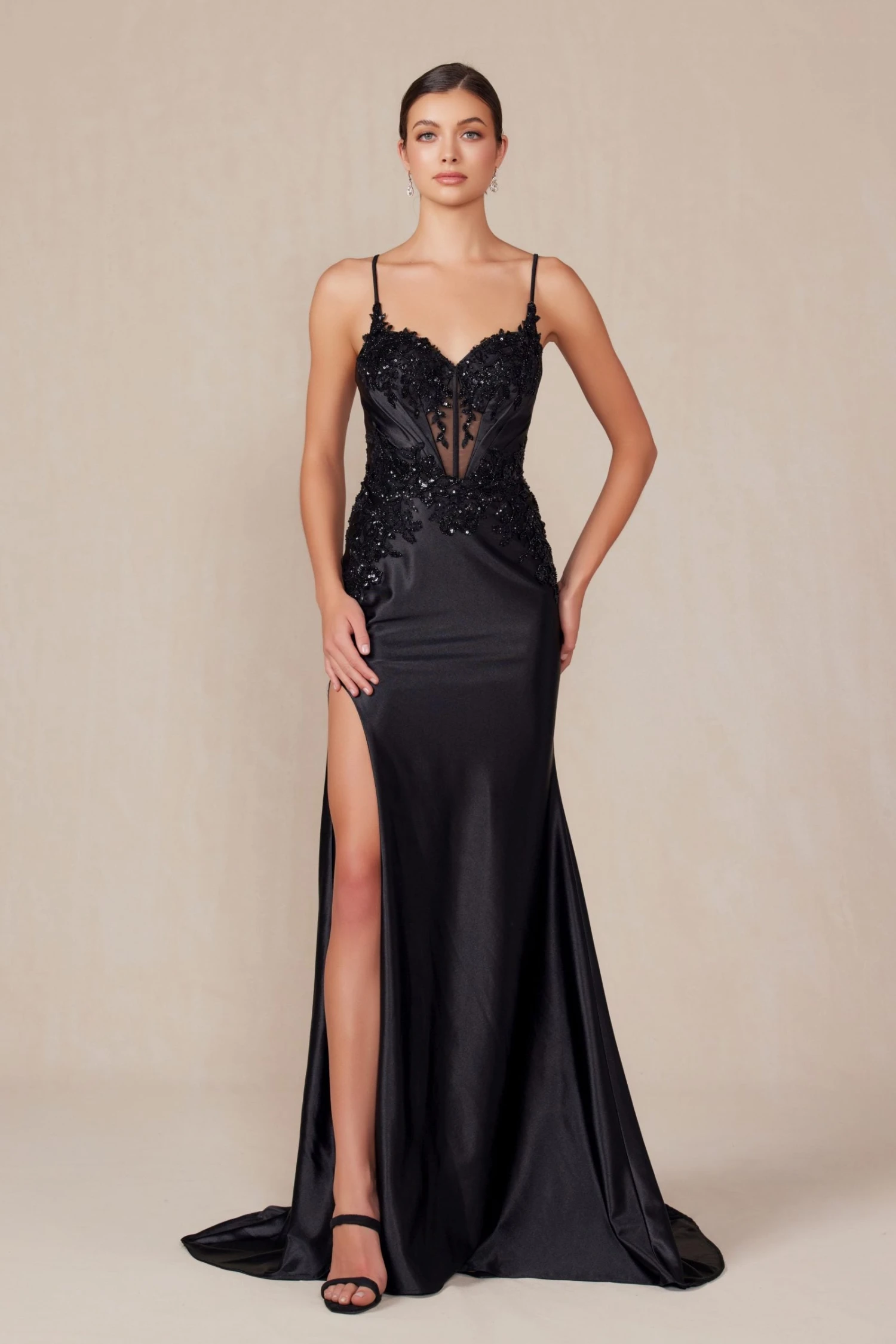 An ideal full-length dress for black tie, red carpet, prom or in any other formal occasions!