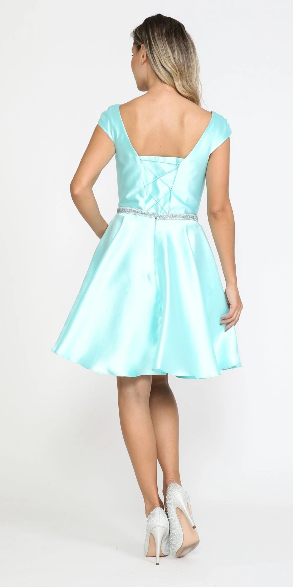Imagine yourself wearing this beautiful short A-line mikado dress by Poly USA | Ed Young 8416. This short, A-line dress features a criss-cross lace up back and side pockets. An ideal knee-length dress for bridesmaid, party, cocktail or in any other formal occasions!