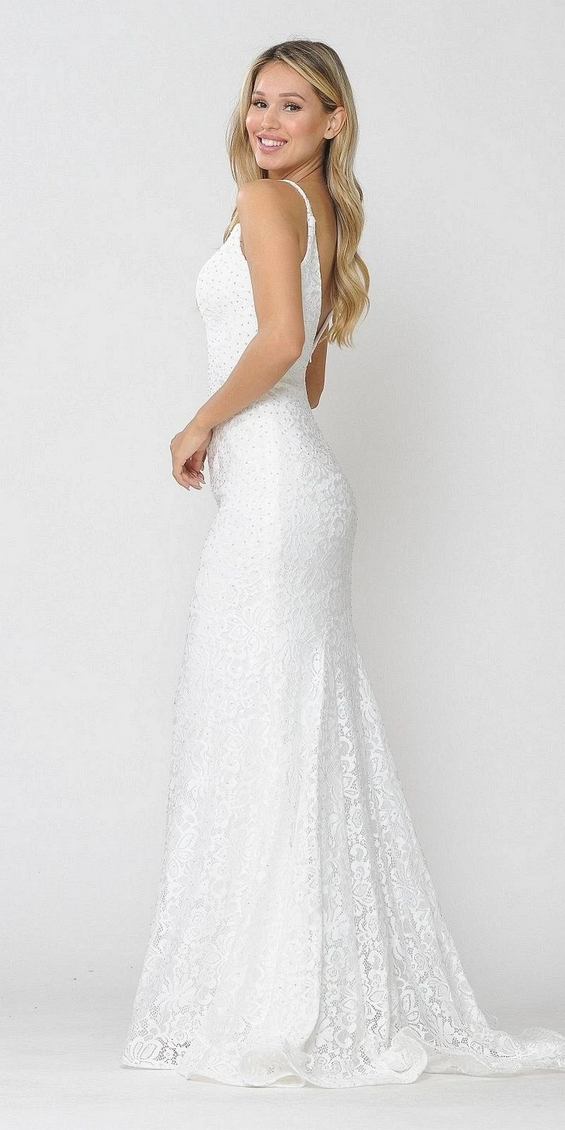 Stand out and shine wearing this mermaid silhouette evening gown made of lace with bead embellishments which features a v-shape neckline and back supported by a spaghetti straps with zipper closure. A fully lined fit and flare long prom dress excellent for red carpet events, awards and gala night, prom, pageant or in any other formal events!