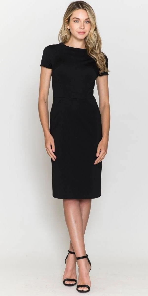 Enjoy the evening in this wonderful midi dress for any occasion by Poly USA | Ed Young 8774. This knee length pencil skirt dress has short cap sleeve with a round neckline and back zipper closure. A perfect dress for bridesmaid, wedding guest, cocktail party or in any other special celebrations.