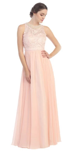 Celavie 6474 V-Neck Sleeveless A-Line Long Dress(Celavie 6474 V Neck Sleeveless A Line Long Dress)