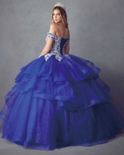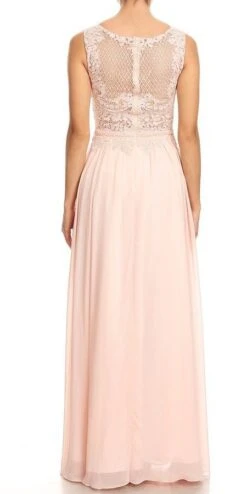 J&J Fashion 3039 Embroidered Bodice Long Prom Dress(Navy Blue Embroidered Bodice Long Prom Dress)